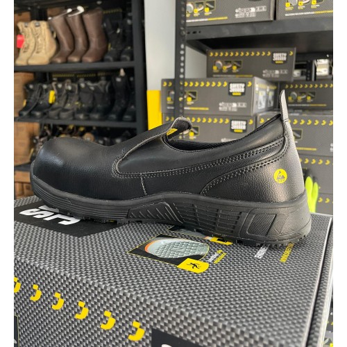 Outstanding slip-on style ideal for medical and food industries. The easy to clean microfiber upper is practical safe and durable. Steel toecap and excellent slip resistance.